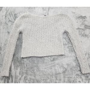 Windsor Sweater Womens M Gray Fuzzy Popcorn Knit Pullover Crop Stretch Casual