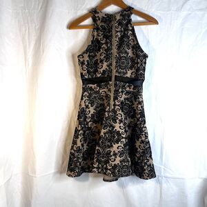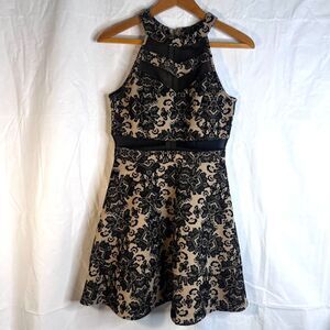 Windsor Tan & Black Sleeveless Mesh Cut Out Fit & Flare Cocktail Hoco Dress SM