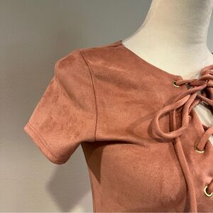 Windsor Tan sexy deep lace up v-neck short sleeve Mini velvet Dress size xs