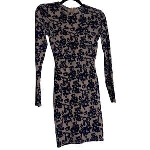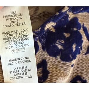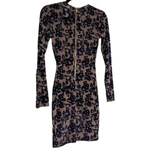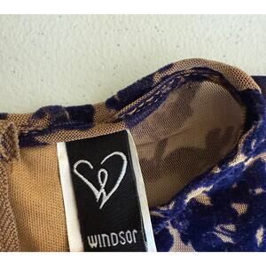 Windsor Sheath Mini True Hues Velvet Dress Women XS Blue Tan Floral Stretch Lined Round Neck Half Back Zip velvet Burnout Mesh Long Sleeve Party Event Holiday Y2K 90s Retro Style Homecoming Date Night Going Out