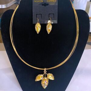 Windsor Vintage Choker Necklace and Earring Set Gold Tone Leaf Design