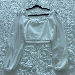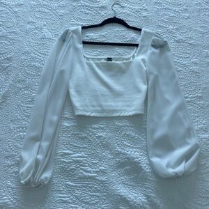 Windsor White Cropped Blouse with Flowy Puff Sleeeve