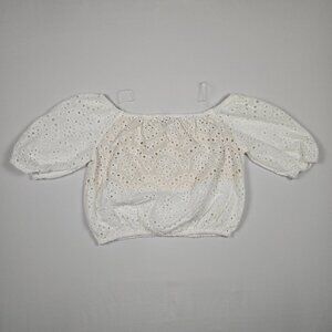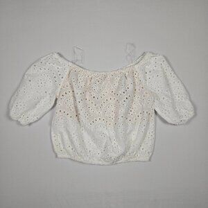 Windsor White Eyelet Off Shoulder Crop Top M Cottagecore Boho Summer Blouse