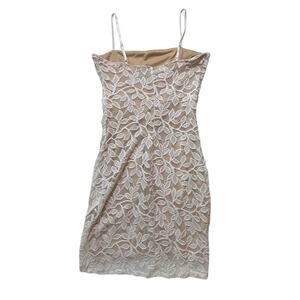 Windsor White Floral Lace Bodycon Mini Dress Spaghetti Strap Nude Lined Sz Small