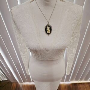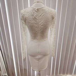 Windsor ✦ White Lace Drop Waist Dress ✦ Long Sleeve Bodycon Lined S NWT