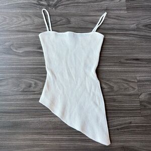 Windsor White Trendy Vibe Asymmetric Ribbed Knit Top XS Square Neck