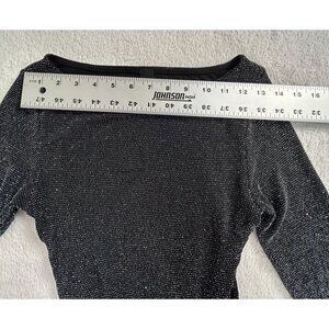 Windsor Womens Black Metallic Long Sleeve Bodycon Dress Large Stretch Pullover