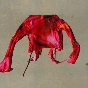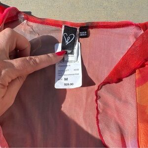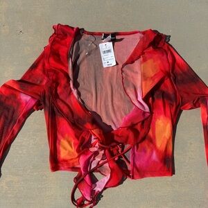 Windsor Women's Red Long Sleeve Ruffle Fairycore Cropped Mesh Cardigan SZMed NWT