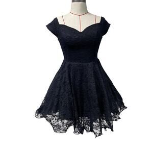 Windsor Womens Size M Black Lace Off Shoulder Curly Hem Dress