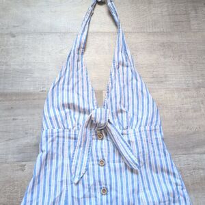 Windsor Womens Size M? Pretty In Italy Halter Button Striped Mini DressBlue