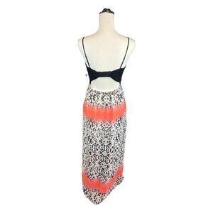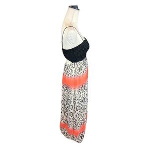 Windsor Womens Small Maxi Dress Smocked Halter Sheer Lined Abstract Pink Black