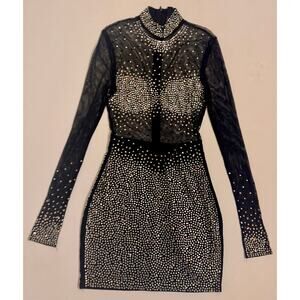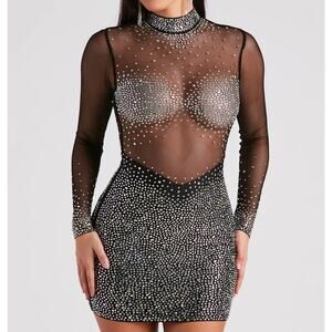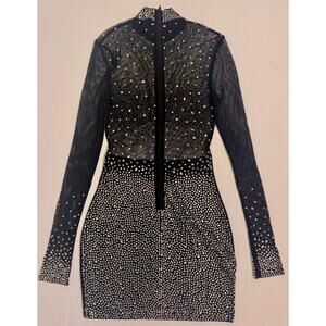Windsor Women's Tate Rhinestone Party Dress Mesh Black Size S Zip Up