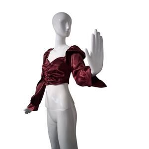 Windsor Women's size Small Falling For You Puff Sleeve Satin Romantic Crop Top Whimsigoth Fairy Vampy Witchy Dark Romantic