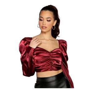 Windsor Women's size Small Falling For You Puff Sleeve Satin Romantic Crop Top