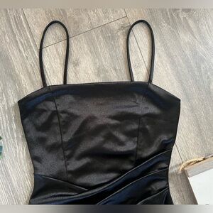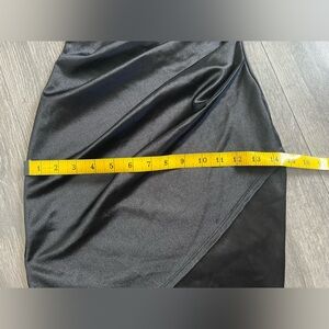 Windsor Wrapped In Stylish Satin Black Ruched Mini Dress. Size XS