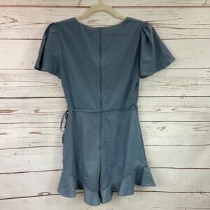 Windsor XS Dusty Blue Ruffle Wrap Vneck Tie Front Short Sleeve Romper Dress