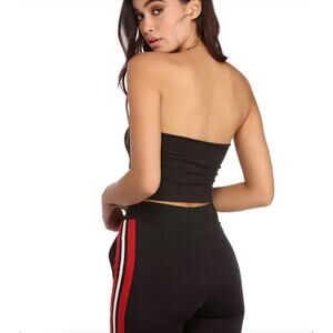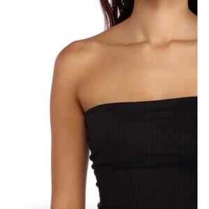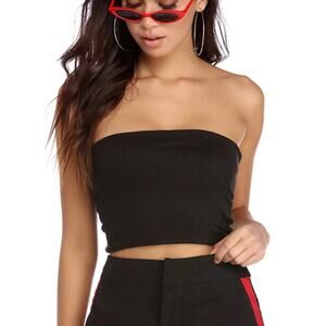 Windsor XS/S Black Ribbed Strapless Crop Tube Top