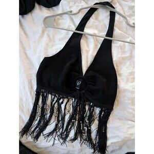 Very cute halter top, beads and fridge. Size small. No padding on inside