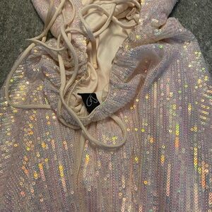 Windsor iridescent Shimmering Cream White Sequin homecoming Dress Hoco XS mini