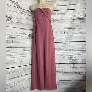 Windsor jumpsuit womens size Small twist front cut out strapless mauve Stretch