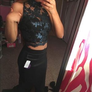 It's brand new! Never worn just for these pictures ! The bottom piece is very stretchy so it could fit to size 4 , the top part is very comfortable and very pretty mock neck , and has a slit on the leg