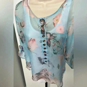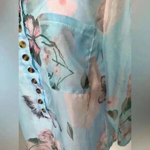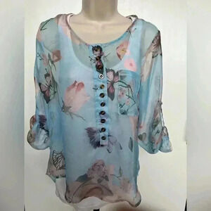 Windsor sheer, silk, flower pattern, blue tone, party top, work top, Versatile!