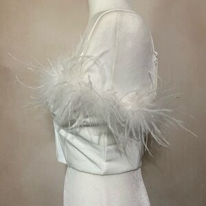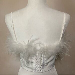 Windsor size S white feather accent crop corset top w/ underwire NWT
