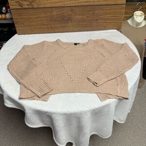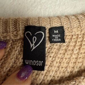 Windsor tan Crew Neck Sweater with Textured Knit split back size medium