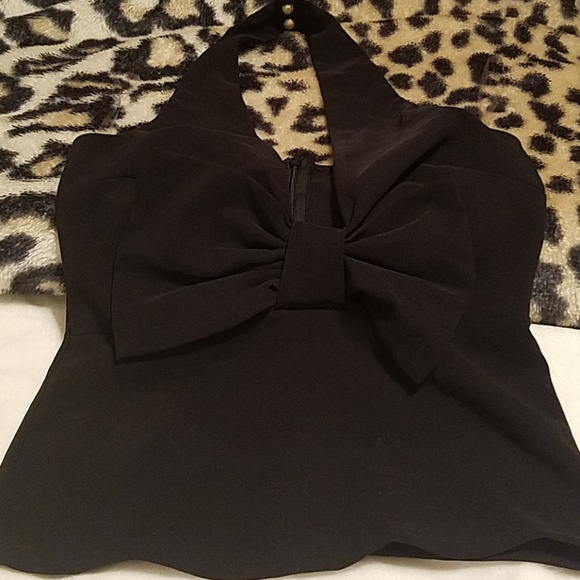Black halter top zipper in the back, low cut in front with big bow size m with tickets.