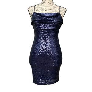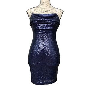 Windsor Midnight Blue Sequin Bodycon Mini Dress in Size Small