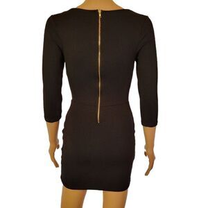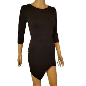 Black color, round neckline, 3/4 sleeves, mini, bodycon, wrap, zipper closure, pull over, strechy and very comfortable. Great condition.