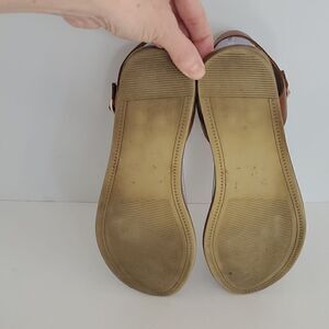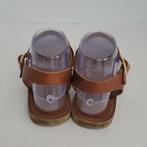 In good pre-owned condition. Shows signs of gentle wear.The name brand has worn off the footbed. Some minor scratches on the leather.