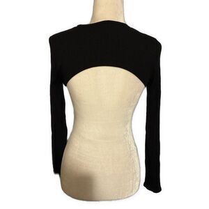 Windsor Solid Black Ribbed Knit Long Sleeve High Crop Top Medium