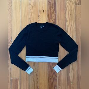 Sporty meets preppy on this striped crop sweater featuring long fitted sleeves, a crew neckline, and a fitted hem on smooth knit fabric with a moderate stretch.