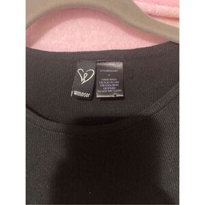 Windsor bejeweled me rhinestone, long sleeve, black fringe, top size small