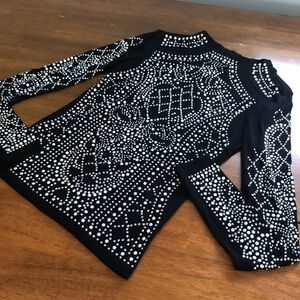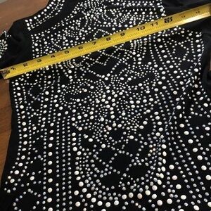 Windsors Womens bedazzled medium stretch sheer black top gothic embellished