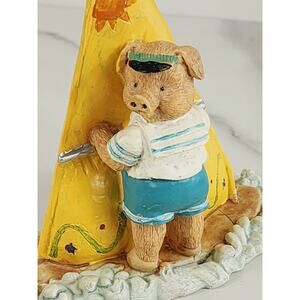 Windsurfing Pig Piglet Piggy Figurine Sail Beach 5" x 4 1/2" Year 90s Home Decor
