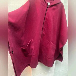 XL Wine Cape Coat Poncho Wine colored Hooded cape with zip front.