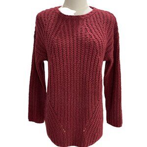 Wine Chunky Knit Sweater Cozy Fall Winter Minimalist Pink Rose Medium