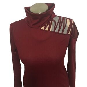 Wine Cold Shoulder Long Sleeved Shirt Size XS