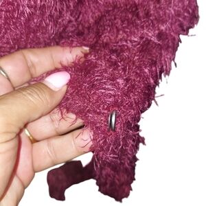 Wine Feather Trimmed Fuzzy Cardigan / Cape