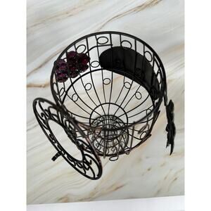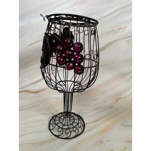 Wine Glass Cork Holder 12" x 6" Grapevine Black Metal Wire Cage Bar Decor