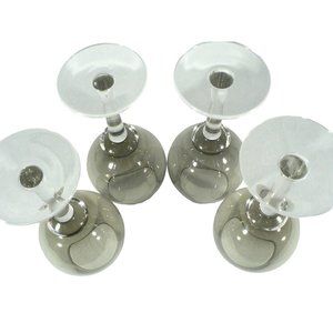 Wine Glass Goblet Smoked Gray Clear Stem Set of 4 Vintage Glassware 10"