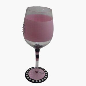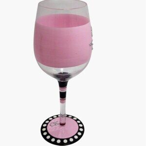 Elegant wine glass adorned with black and pink rhinestone ampersand design, perfect for special occasions or as a unique gift.