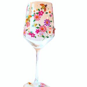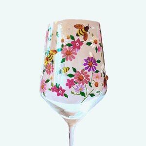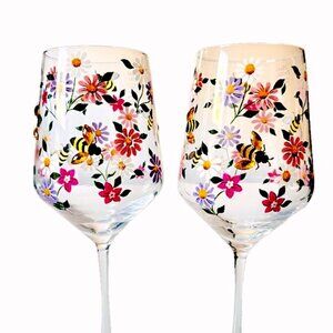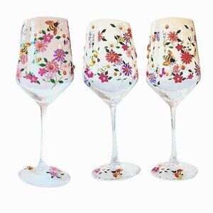 Wine Glasses Hand Painted Embellished Collectible Lot of 3 Floral Bees NWT