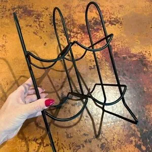 Stylish and durable black metal wine rack, perfect for organizing your favorite bottles. Enhance your home dining experience with this elegant piece. Holds 4 bottles.