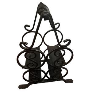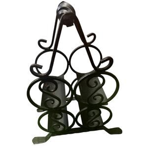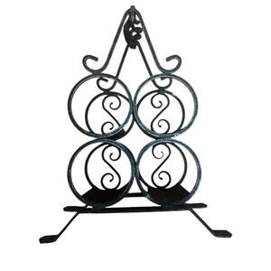 Wine Rack Country Farmhouse Wrought Iron Rustic Black Holds 4 Wine Bottles Heavy