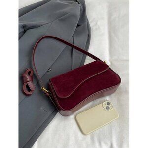 Wine Red Suede PU Material Handbag, Armpit Bag, Handbag, Makeup