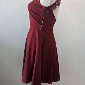 Lulu's Women's Size Small Need You Close Wine Red Lace Fit & Flare Skater Dress NWT