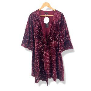 Wine Sequin Plunge Dress Size 18 2X New Embellished Evening Holiday Party Plus